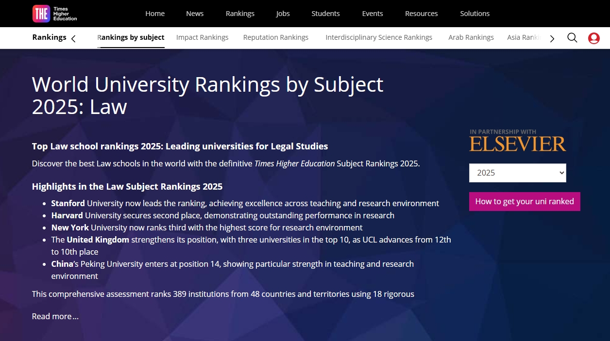 2025年QS世界大学法学专业榜单出炉 北大法学院评价显著提升 蝉联中国内地榜首